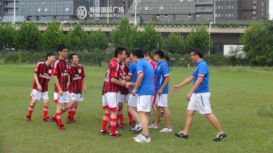 人們在緊張的工作之余會有哪些消遣和娛樂呢?除了捧著爆米花在電影院,除了喝著大杯的可樂閑逛在光怪陸離的街頭,也可以青春洋溢的出現在足球場。你看那碧草如茵的綠地,興奮熱情的球員,仿佛是回到了還在揮灑著汗水的日日夜夜,這樣鮮明的隊服,這樣興奮的目光,不是哪個國家的專業足球隊,而是東方華美在7月15號組織的集團足球賽。人們都知道7月14是世界杯落幕的日子,仿佛還沉浸在世界杯所帶來的不能自拔的熱情,東方華美廣告部和設計部也進行了讓人興奮不已的“巔峰對決”。
