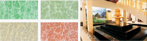 [華美藝術(shù)隔斷] : 通過(guò)將建筑、尾礦等余料回收,通過(guò)自主發(fā)明的全新第五代水性環(huán)氧互穿技術(shù)制造而成的無(wú)污染、可私人定制的仿石產(chǎn)品。產(chǎn)品實(shí)現(xiàn)了綠色循環(huán)、資源再生,可代替陶瓷、天然大理石、玻璃、木材等相關(guān)建筑裝飾、裝修材料。